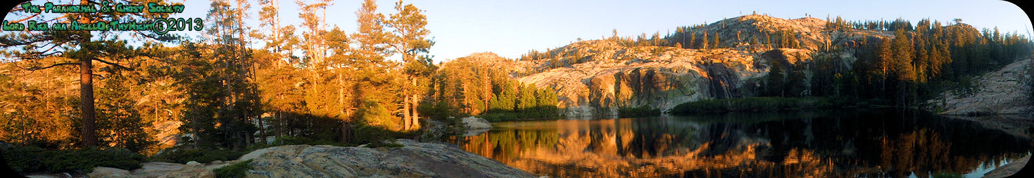 The lakes are seperated by a massive granite slab well over 60' while the lakes drain out into Shaelor Creek which eventually drops down into the canyon. The lower lake is much larger, deeper and pristine. While the upper lake is tightly nestled by granite cliffs and is much more shallow thus plant life grows along its shores.