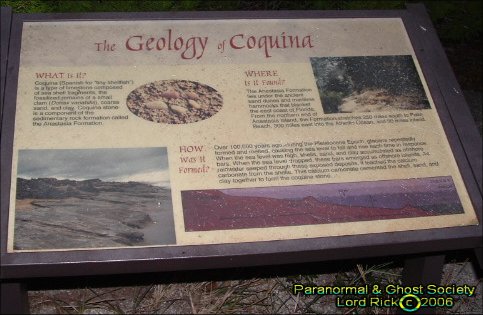 More then three centuries ago a quarry was located on this island which was at one time Native Americans hauled out blocks of rock from it. When that population died off or migrated south in FL the quarrying was left to African Slaves. Hand tools would be used to cut out blocks of the soft shell stone and squared were pried from the natural layers of rock. The blocks of coquina would then be loaded onto an ox drawn cart then barbed across the Matanzas bay to St. Augustine. Some of this coquina was used in the construction of Castillo De San Marcos, Fort Matanzas, Private Houses and even public buildings. So as you can see this was an important investigation for us because it has a connection to everything you currently see down St. Augustine. The island back in the 1500s was plagued by pirates and Spanish soldiers during that time always built their homes and forts out of pine trees or palmetto. The problem is that storms or fire could easily destroy such material. So the Spaniards wanted to discover a way to overcome this so they discovered this building material which is made of rock material deposits and broken shells. In the 1500s the Spaniards made a small gunpowder storage magazine it was not large but it was the start to many other structures that would follow with this type of material. In 1671 the quarrying increased and the Spanish called it "Cantera" which means in English Quarry. We investigated the main quarry on the island which has been worked into a state park but their are other ones very few people know about. Also near the site is the old St. Augustine Amphitheater which we also found on our hike. Coquina rock is fairly soft and its easy to cut while in the ground. Once exposed to the air it can harden. The Spaniards learned to water proof this rock by coating them in plaster and paint. The test eventually did come when Fort Castillo was bombarded the walls absorbed all the cannon balls. Eventually the British used it in 1763 and then the Americans in 1821. Alot of places we go are coquina structures even most of the sugar mill plantations. Wandering the island was a real treat here we sort of felt like pirates stuck on an island. We could hear the ocean near by as we walked the dark sandy trails. I have to admit this was more fun then haunted by the history here is quite interesting when you think about pirates and centuries of quarrying being done. Some of you are probably not aware of it but we investigated the lighthouse which is also on this island and we got some good ghost activity hearing the little girls that haunt it late one night. I mean the island is what it is its haunted but when people hear of this island they directly think lighthouse very few are aware of the old quarry. You can read more about the lighthouse on the island by Clicking Here: Saint Augustine Lighthouse which we also investigated and explored. © By Lord Rick-AngelOfThyNight