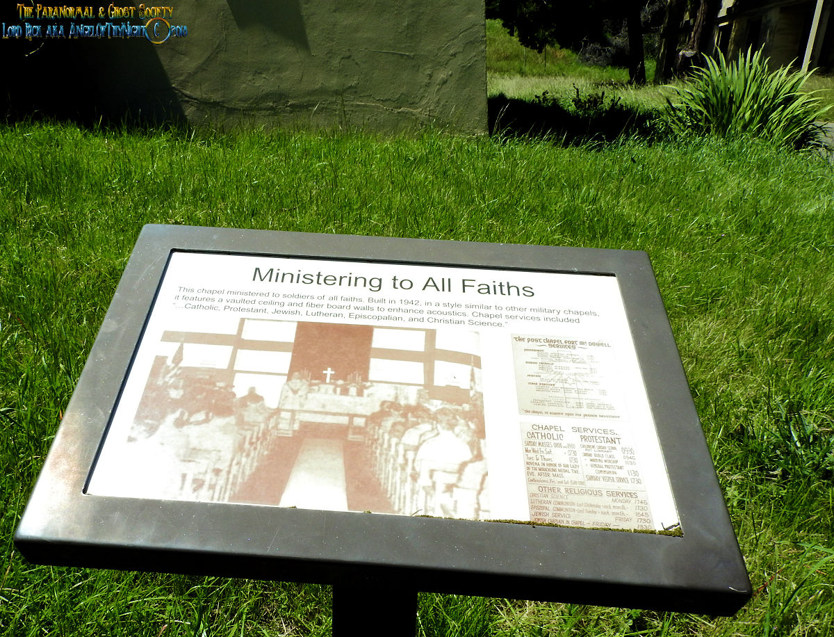 This chapel ministered to soldiers of all faiths. Built in 1942, in a style similar to other military chapels, it features a vaulted ceiling and fiber board walls to enhance acoustics. Chapel Services included Catholic, Protestant, Jewish, Lutheran, Episcopalian and Christian Science.