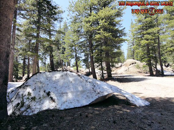 In the 1940's the dam had raised the lakes quite considerably as this area is surrounded by multiple ponds or smaller lakes in the region. However due to heavy snowfall the dam does retain allot of the water found within the lakes. My first exploration of the area was in July of 2011 as we hiked on a trail that went between the lower and upper Blue Lakes. I noticed that in the forest there were snow drifts as high as 10' in the middle of summer. Due to this factor the Blue Lakes area is closed for most of the year and highly in accessible. This may be a factor as to why this is Bigfoot's stomping grounds. The mountains that overshadow upper Blue Lake contain allot of snow and remain in solitude for anything to run amok.
