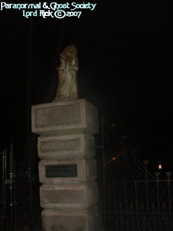 I was starving, shivering, feet were killing me, sick and had a heat rash on my legs. I was hungry and then out of nowhere the Lord seen the golden arches and thus I called this heaven as I walked up to the drivethrough and demanded in the ghetto a hamburger. The only white male working there looked at me smiled and put an apple pie free in the bag and that is the power of the Lord...Lord Rick that is! Peace to all those members who donated for the Savannah trip bless you Jill and Anna you both mean the world to me. :) This is a fact I lost my hat in a tree I believe you and me spooky things happen even when their not supposed to be so spooky! The Entrance with its wreath is a wrought iron gate graced by two columns and statues. The cemetery has many statues I did not even capture close to as many as I seen in the moonlight just an amazing place!