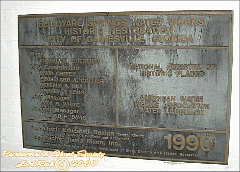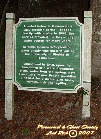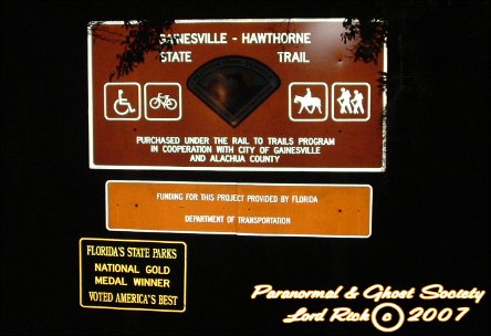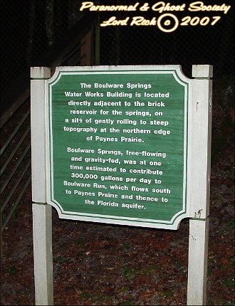 Back around 500 B.C. the native American cultures were provided with fresh water from Boulware Springs. The area in the mid 1800s was eventually used by the locals in Gainesville for local swimming and picnicking. Like most springs people in Florida back then for a few centuries thought that springs like these could heal you or they served as fountains of youth. In 1891-92 Gainesville purchased the springs to provide water to the residents. The county seat from Newnansville was moved to this unnamed town at one time Gainesville was nameless just a little part of history I felt was relevant here and this place does tie into our Newnansville Investigation. By 1892 Gainesville's first central water works was built which was the sole source of Gainesville's drinking water from 1898 to 1913. The pump house was built in 1902 and has white brick walls, standing seam metal hip roof's, and segmented arches above several windows. The building is not fully restored but it still is in fairly good shape. The city of Gainesville convinced the University Of Florida to be located here rather then Lake City with an offer of free water from the springs. In the 1980's the area was designated as an American Water Landmark and was listed on the National Register Of Historic Places. The area is now a park and the springs discharge 300,000 gallons a day from the Floridian Aquifer. Near the water works is a very historical state trail called The Gainesville-Hawthorne State Trail. It stretches from 16 miles starting at Gainesville's Boulware Springs through the Payne's Prairie Preserve Park. It also stretches on into the Lochloosa Wildlife Management Area which is not to far from the Rawlings farm another area we investigated. See everything we do almost is connected. The trail was turned into a recreational narrow bike trail designed for walking, cycling, and even horseback riding. At one time this trail was actually a set of railroad tracks. Back many years ago it was surrounded by citrus groves, small railroad towns, and coal burning locomotives. They often nick name this route the Traders Path because it at one time stretched even further back in time when William Bartram explored the area, Seminole Indians lived off the land and Florida's first settlers traveled by wagon. The railway that was located area was used in hauling freight such as vegetables, fruit, lumber and even passengers in the 1800s. The state acquired the trail property in 1988 and 89 developing a trail. I think what would make this area so haunted is that it has a rich history surrounding it. The springs have been visited for hundreds of years just as this trail at time had a trail that stopped in many towns which are now ghost towns. This will always be a special investigation as it was our first in the Gainesville area and of course without the springs the very well known college which is downtown Gainesville would not have been built here. © By Lord Rick-LordOfThyNight