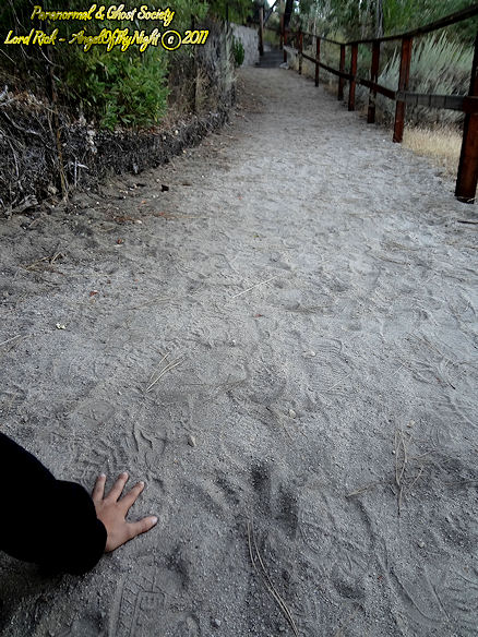 The first investigation of the grounds revealed two hand impressions one in the center of the cemetery trail the other at the entrance leading up into the mansions grounds. Now I am not saying they are paranormal but their is a possibility that they are.  Its strange that the prints are in tact despite the amount of foot traffic that the mansion recieves.  Signs of the past! You decide!