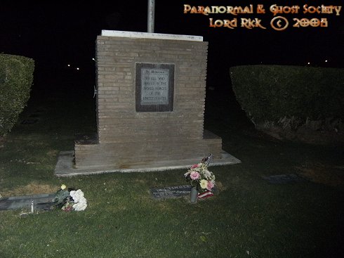 Bunkers Memory Gardens was named after a pair of brothers its a funeral home and mortuary along with a cemetery. Within the cemetery is many sections divided up into different areas. Some of those areas like The Garden Of Angels, Temple Of Prayer, Pioneer Mausoleum, Garden Of The Cross, Baby Land, Garden Of Eternal life etc etc are symbols of what this place stands for. Its more then just a cemetery its a place full of gardens, green grass, pine trees and is like an oasis in the desert for the deceased. Its not an old cemetery believe me but its a very large place and I met someone who has buried someone here. She did her own investigation and found it to have some activity. I think I enjoyed exploring it more then investigating it simply because I went from investigating 300 year old cemeteries in the south to visiting a few year old cemeteries. Its a hard change to digest while my tour here in Las Vegas. But nonetheless research and work are important. The photos...and evidence we share is relevant but its not everything. Everything is being in the place and being able to feel what I feel see what I see. Memory Gardens is a peaceful place giant wrought iron gates and in the future will probably be visited by other enthusiast simply because of its size its very quiet to roam this place and tune in with the unknown! I think that cemeteries of today no longer look at death as beauty but rather its a business in today's world. Years ago in the 1700s and 1800s cemeteries were an art graves were hand engraved some towering 20 feet above, crypts, vaults etc but today death is a business and all about gardens...flowers...a marble block sunk in the grass. Sometimes the elaborate stones symbolize who these people were and as a memory to their existence. © By Lord Rick |