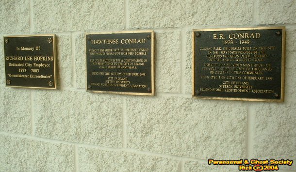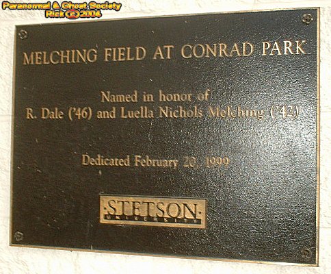 The field was named after R. Dale Melching a member of Stetson class of 1944. He was inducted in the Stetsons Sports Hall of Fame in 1978 as he played varsity baseball and basketball for Stetson. He encouraged athletics to young people and was a team leader when it came to sports at the university. Melching was a star and of course in Conrad Park you will see plaques and photos of him. Alumna Luella Nichols Melching of Coral Gables donated $500,000 in the building of Conrad Park she did this to have the field named in honor of her late husband R. Dale Melching. She was a Hatter cheerleader and supported Stetson sports for many years. The stadium was made out of red brick, stucco facade and green roofing which resembles the Stetson campus. They also took the role in development of Stetson's Wilson Athletic Center which is a $1.6 million dollar facility which was dedicated in Dec. 1997 in the name of Patricia and Pat Wilson of frost proof. Then we have another well known person named E.R. Conrad who was also an amazing baseball player in Stetson's history his son I believe Hawtense Conrad helped fun the building of the new ball park and made it possible. Then there is little things like Richard Lee Hopkins a Deland City employee who was the parks grounds keeper from 1973 to 2003 who has a memorial here. So there is much history involved here as one old park with history had a new one built in its place. But as of now this is all the history I have on the ballpark which gives you an idea that even though the ballpark is new the grounds have a past as some baseball players game and went as well as the people who once served here. I chose to investigate perhaps because I was drawn to this place. At night there is such a peace that looms about it perhaps what makes it eerie is them high green rod iron gates. But the area is very gloomy at night as much trees, bushes, and high walls surround the entire ball park. Often you sit down and you think about over the last century how many people watched a baseball game, played at this stadium or even the old Conrad Park. There is a lot of energy as the years pass perhaps enough energy that manifestations can occur. But perhaps E.R. Conrad or R. Dale Melching enjoyed the game so much and are so honored to be remembered by having a ballpark in there name maybe they stay around just to watch the game. Although our first investigation did not reveal a lot of photos due to the cops interrupting the investigation we will return here someday as there is some level of supernatural activity occurring here. I have been lucky enough twice to be inside Conrad Park once I was on the baseball field and another time was on the bleachers as I snuck in to get some photos for my fans. Honestly I am not a big baseball fan more into hockey but as a child I remember my father buying my first baseball bat till this day I still have it and remember how he use to play ball at the park with me. I also remember one time we visited coopers town the baseball hall of fame oh how he loved baseball. So I could see how he loved it and it made me think if you were a ghost where would you be if you loved something? © By Rick-AngelOfThyNight