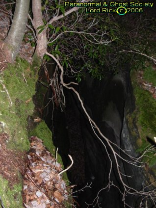 In the earlier 1900's this area was inhabited by a family or gang of counterfeiters. The family said to be involved was from Ohio printing fake money. Eventually the Department of Revenue Services found this out and raided the out cropping in the cliff side. During this raid one person was shot and killed in the gun fight. There is also a rock that extends on out which has carved in it the name of the family. They say the leader of the gang was maw but that to me sounds more like maw barker here in FL so I am not so sure if she was the actual leader in charge. Good chance that quite a few were involved in this back then but they were caught eventually after the gun fight. I also heard rumors of another cavern in the area wish I had more time to look around its a weird place very secluded to. The only way really to get into the Den is to repel on into it and trust me if you fall you could die its a very large and high cliff. To get to the cliff alone you have to hike threw thorn brush and its a hidden area. There are no signs to get here or parking areas. Its one of these places you park, cross some old unused tracks, hike in the woods with no trail and come right out looking over a cliff. I did climb a part of the cliff in a less steeper area and I did enter a den maybe not the same one or maybe it was. But like I said it was steep and there were drop offs. There are some pretty deep crevices to and today its a well known spot for visitors to try and hunt down those Counterfeiter press plates which are still said to be hidden here. © By Lord Rick |
