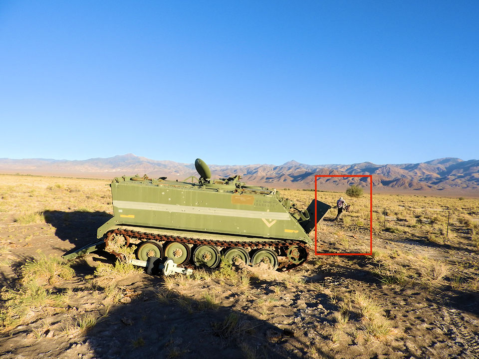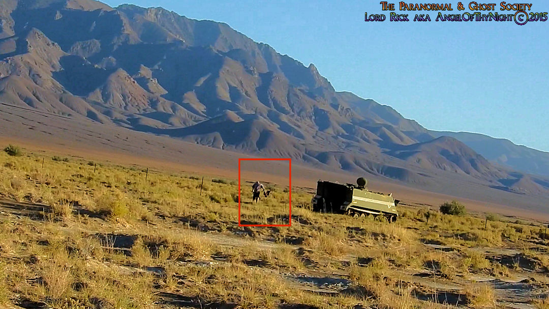 Directly in the photo below you see that the figure is gone and why? After taking a picture of the figure I pulled a little ways up the road to seek some cover behind an armored vehicle but also to get to my backpack so I could put fresh batteries in the cam. Upon changing my batteries we waited a little bit trying to discuss what we should do because I really did not want to pass up exploring these armored vehicles as its not something you get to see every day true or not? The same figure I seen up near the fence when I first pulled up we witnessed peering around the armored vehicle and sometimes low to the ground like it was crawling in the high grass. I was not filming it because I thought this was just a human being hanging out at this site sometimes people camp up in Dixie Valley or squat even!