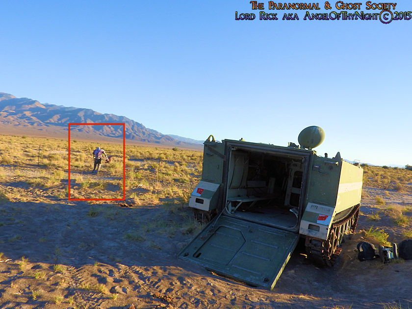 The Dixie Valley region is owned and maintained by the US Navy to train its soldiers therefore over the years allot of equipment was left behind by them including armored vehicles. Pay very close attention to the two photos above as this is how exactly the area had looked like upon my arrival. I had seen a few armored vehicles off in the distance so upon pulling up to the site I zoomed in and took a photo of them of course. Behind the vehicles is a barbed wire fence where upon pulling up in the jeep we witnessed a figure standing next to it of course at the time we thought it was a living breathing person.