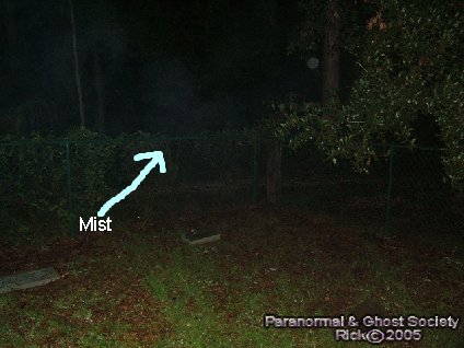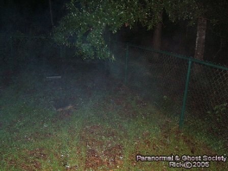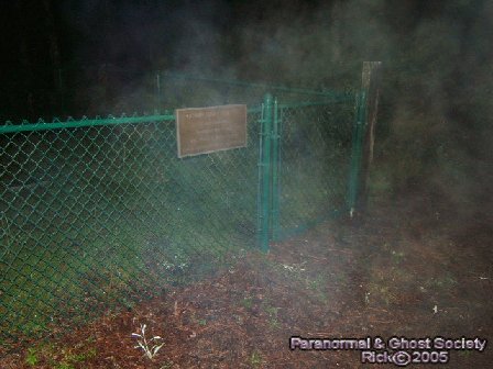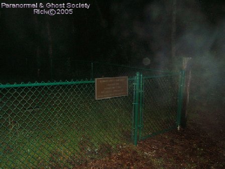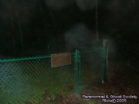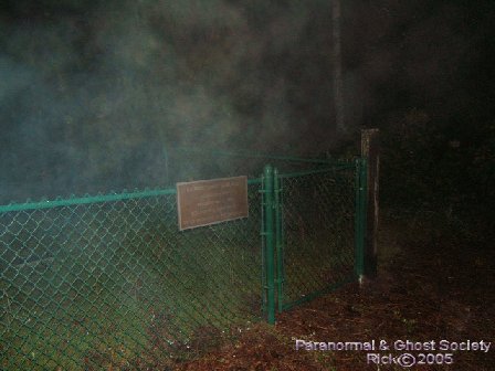 Subj: [ParanormalFlorida] Saturday's Investigation Report.... Date: 8/2/2005 1:19:49 PM Eastern Daylight Time From: AngelOfThyNight@aol.com To: ParanormalBuffalo@yahoogroups.com, paranormalghostsociety@yahoogroups.com, Paranormalflorida@yahoogroups.com, ParanormalGhostSociety@groups.msn.com, ParanormalGhostSocietyConnections@yahoogroups.com CC: FairieGlamour76@aol.com, JayJW99347@aol.com Eatman Family Cemetery We had a long country drive to the Eatman Family Cemetery. This was down alot of woodsy roads with no cars or houses really. Just plain darkness for miles. We drove past this odd side road that had huge iron gates on it but the road was not a cemetery. I parked the car and squeezed in some bars only to come out onto this hilly road going up a steep hill into the woods. Their was some very tall lamp post and it looked like maybe this road led to a mansion of some kind. I came around a bend and found a small fenced in area in the woods with a plaque. I felt really watched and I was alone so I was able to feel out the higher energy here. The cemetery looked very small but it sat in the woods extremely private and almost impossible to get to cause nobody knows about it really. I got Jason and I then showed him where it was. We basically stood inside the cemetery and were shocked at its size. Their were roughly 20 flat stones and one stone that was weathered extremely. We found one stone that dated back to 1836 so this family cemetery has been around for almost 180 years. The cemetery was pulsating with cold chills. Their was something moving around us I seen it jump out at me during one of my photos maybe a child. But my feeling was that whatever was here was lonely and excited to have company. Their was various ghost I believe from the Eatman Cemetery and they did follow me to the gate but would not go past it. What is here likes being here and stays within the boundaries of this family burial ground. I felt a little overwhelming at times. But the entities here were very responsive to me. I was in the cemetery for only a few minutes and very much remained in control of what I needed them to do for me. We did hear some movement off into the woods ghostly or not who knows but when I do the updates the photos will speak for itself. I noticed that they warmed up to me after we spent a little time here reading various stones. But they were also cautious so alot of Ecto shots were at some level of distance unlike other ones I normally get. In the distance was a storm so the sky was flashing like mad off in the distance. We then walked back down the road and gates. The sprinklers went off so we got a little wet but it was a really nice place. It was secluded, relaxing and a nice little ghostly jewel. We then visited Washington Oaks State Park & Gardens.