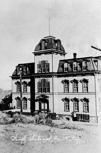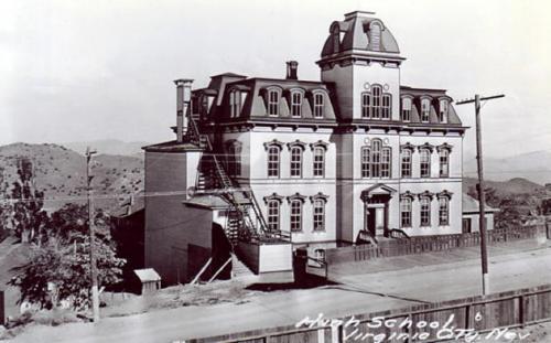 Photo of Virginia City appearing on page 21 in Paher's book. It is undated. The Fourth Ward school is at the upper left.