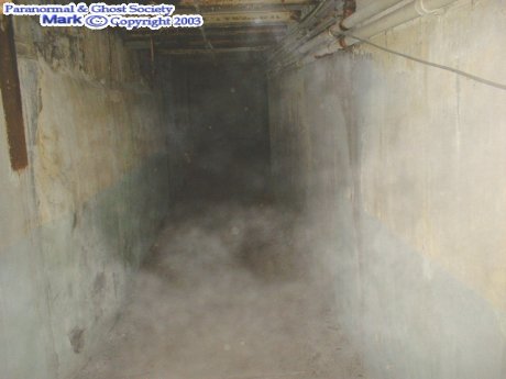 Surprisingly this was not that haunted the cold storage for the deceased was no longer in service but still ice cold. The tunnel leading underground something went past me quickly and I felt it then Mark did also it was very ice cold around us. We worked our way up to some garages some areas were cold and I felt watched and this is where we captured some nice apparitions. It was a pretty big bricked in area looked more like a workshop and there was moving cold spots you could see the entities in the flash very easily. We then went back out through the catacombs and tried opening a few more unlocked doors some were storage closets, little rooms a few twist and turns down here and its quite easy to get turned around.