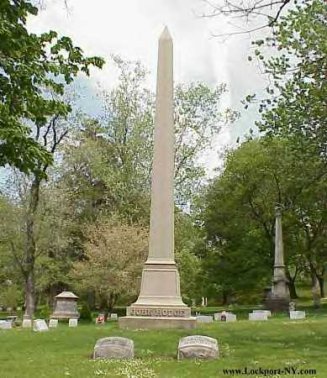 The most famous and generous of the Outwaters was Dr. Samuel Outwater who practiced medicine here. After retiring from practice he moved to the Oakland, CA area where he died in March of 1953 at the age of 95. His ashes were brought back to Lockport by his widow, Alice, and were placed in a plot at Cold Springs Cemetery. Other members of the Outwater family are buried here at Glenwood around the family monument pictured here. Alice died in Septemer of 1968 (also in Oakland) and her remains are also at Cold Springs, not here.