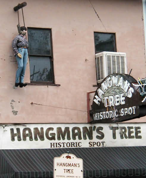 Where this saloon stands was an oak tree where some hangings did take place. I heard from someone six I heard from others it could have been a couple hundred. The first hangings in gold country occurred at this location. Rumor has it in the cellar is also the stump to the old oak but I cant say for certain since when I arrived here the saloon was closed and the hanging dummy had been removed. The hanging tree did not exist to far away from the mining camp up in Big Canyon Creek maybe a mile if that away. So if you came into the camp guns blazes chances are the locals lynched you for your lawlessness!