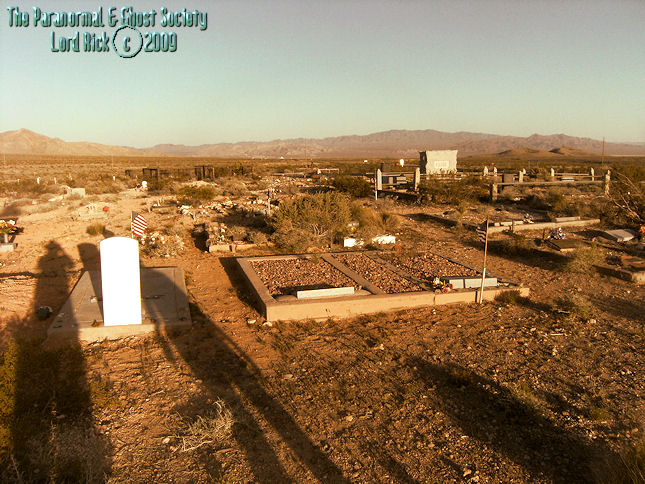 Goodsprings Cemetery is visited by quite a few paranormal groups. I never had any idea till I did research on the place after I visited here. In retrospect I wanted to visit the ghost town then realized that while enterting the town of Goodsprings this place greets its guest with almost 2 acres of notable burials. The cemetery was used before A.J. Robbins donated the property to the town in 1913. The earliest marked grave dates back to 1890 noticed I say marked since nobody knows the dates of the unmarked burials here. Anna Nimmer was however the first marked epitaph within this burial ground. George Fayle who was a Clark County Commission Chairman is buried here who also was the builder of the lovely Fayle Goodsprings Hotel in 1916. Another burial is Jean Fayle whose name carried over into the town of Jean near stateline. Their are other notable burials who were residents also for example Norman Price who built the towns school is permanently residing here. My take on this place is that its not very haunted I got 20 times the activity in the mining distrct in seclusion. For a semi ghost town cemetery its rather well maintained. One grave caught my attention which had flowers yet was covered in beer bottles and cans. The cemetery actually sits near a mine and mill which once burnt down. It was only natural to have a cemetery in each town especially when mines were being built due to the amount of accidents and deaths that would occurr. Allot of other groups claim to capture anomalies here but I bet what is more priceless then any photo would be to find a local who has lived near here and has a few tales of there own. © By Lord Rick