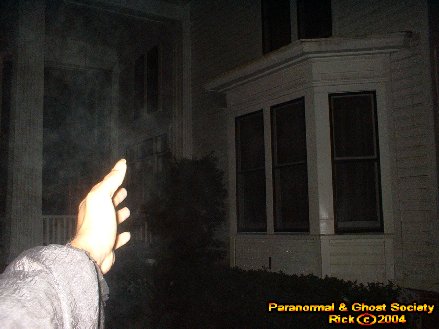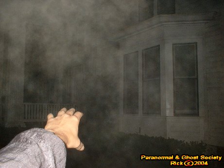 At this point I could see the ectoplasm forming by my second photo and you could briefly see the head and neck take form. Eventually I reached my hand out as proof that the entity was just a few feet away. At this point I knew that I finally had gotten the restless souls attention here. At this point and on I felt followed all the way to even the front. I noticed whatever is here however would not leave the mansions gates.