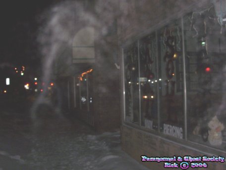 I went down some alleys and near some shop entrances. Most of the activity I noticed was in entrance ways of shops or on the backsides. I was admiring the rod iron stairs, old wooden steps and gates on the back sides. I made stops everywhere though to the historical society, apartments, shops, alleyways and on a few occasions was able to see a few apparitions standing near me checking me out. I sort of grasped the idea that the ghost here were walking the streets after dark and still felt that way tonight. There are just certain areas you feel watched from such as alleys, windows, stairwells etc. I even captured something outside my tattoo shop my artist would be pretty shocked to know his business has a ghost or two.