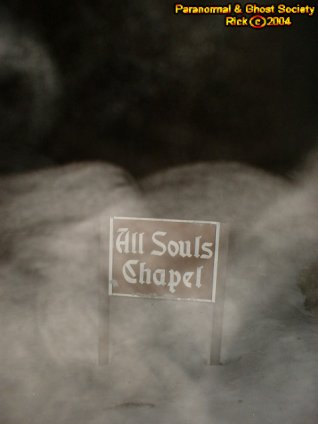 reverends and priest. There had to be over 100 of them nestled between the tower and chapel it was so dark back here. Most of the stones were fancy crosses. Then the dimly lit chapel light starting flickering like mad as if the energy was being drained. It was pretty intense.