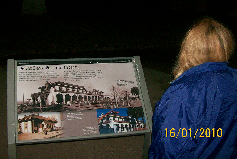 The town of Kelso was named after a man who won a contest to have it named after him. This town like Goffs thrived on the railroad in this case the freight depot. The town was also built near some springs I never found them but seen photos of a canyon filled with water. Such springs are really not that uncommon in the Mojave after all Tecopa has hot springs you can bath in. Unlike older towns Kelso did not boom till after the 1920s. By the 1940s almost 2000 residents lived here. Many of the locals worked in the Vulcan Mine near by which mined iron and borax. Later Gold and Silver were discovered in a part of town known as the Kelso Mining District. I never did visit the mines in this area but from what I read they are collapsed much like the structures in this town which are deteriorating with time. Kelso was the base of operations for the LA and SL Railroad which today is now owned by the Union Pacific. In Kelso the trains were watered and helper locomotives were attached to assist the regular engines in climbing Cima Hill to the north. Kelso had cafes....restaurants....thus visitors could stop here for lunch or dinner. It worked out for passengers since the distance from Deggett and Vegas had no meal car aboard the train. The train depot was built in 1923 and like the school in Goffs this also has a Spanish Mission type of style to it. The station had a restaurant for the employees and passangers. It also had a telegraph office and lobby. Upstairs their were boarding rooms for employees who worked for the railroad. The restaurant that was built in the depot was often nicknamed the "Beanery" which served home style type of meals. The basement in the depot was used by the local community for events. During the 1970s the town had about 70 to 75 residents and was known as the town without television. The town actually had more school children it seemed then adults. Television signals could not reach Kelso due to its seclusion as it sat deep in the Mojave desert. The children in Kelso ran the streets till dark while adults sat on their porches talking about the simple things in life. The depot remained in operation till 1986 where it become an abandonment until 2005 when it was fully restored and opened to the public as a living piece of history. Surrounding the town is the Kelso Mountain range and Kelso dunes. When the Vulcan Mine was shut down in 1946 that is when the town started to die. Today if one visited the area you would see signs of the past such as a few of the residential houses which are abandoned, foundations, old post office and restored depot. I had a brief feeling while walking around the town that I was not even in the desert as everything here is so lush and green. © By Lord Rick . . - - - -
