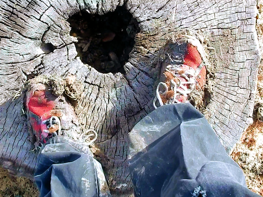 It seemed like water collected around tree stumps so I learned to just stay away from them because being stuck in the mud is a fight for your life. You cannot move or walk forward all you can do is pull one foot out at a time then try to move away from the softer earth.