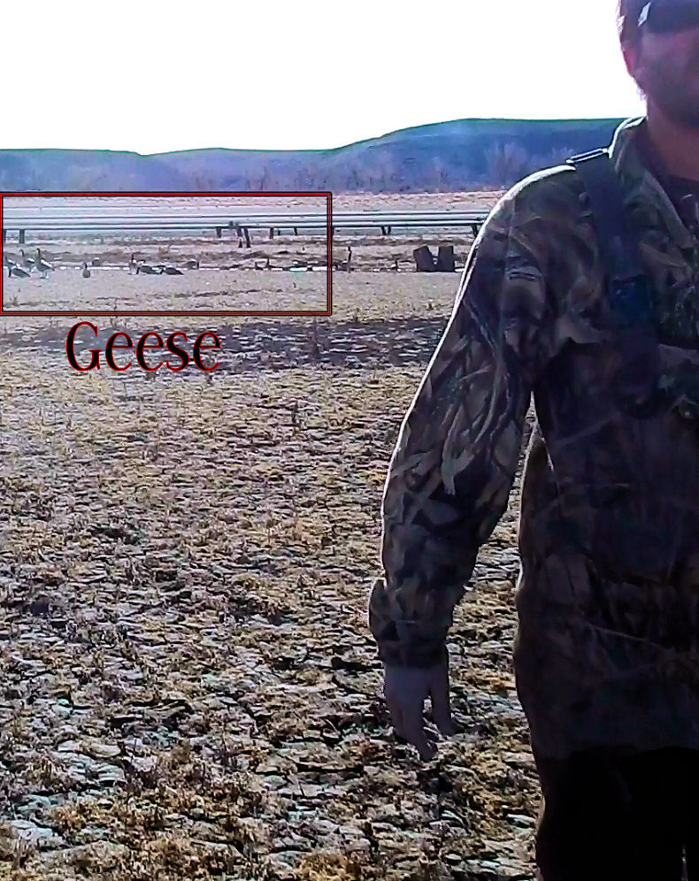 If you go check out our videos you will see that their are geese honking therefore no I was not scaring them away. They had many geese they could have hunted towards the west side of the lake therefore me heading to dryer land to the west would have no effect on their ability to hunt. I ripped these two photos out of the video to show you that the geese were nearby the hunters and me. Despite the men yelling at me trying to use the excuse that I was scaring them their was an entire flock behind them near the tree stumps they were hiding behind thus these hunters are either stupid or just have no idea what the hell they are doing.