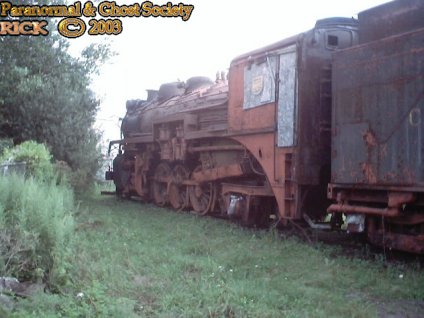 Copyright By Rick-AngelOfThyNight Update: About a mile on the opposite end is a series of many tracks most lead to dead ends most likely a train yard. Which is used daily to ship wood to other warehouses in the area. Parked on one of the dead end tracks is an old steam locomotive with Canadian Pacific written on the coal car. The engine is enormous some of the wheels alone are 6 feet in height and I would say the top of the engine is over 15 feet in height. To even get into the engine itself is a good climb up. What I find scary about this engine is its size imagining how back in the days you would hear about these train wrecks that would kill 100s and now I know why these steam engines are so large and powerful. I do not know the history on this engine but it obviously has been on these tracks for many years probably over 30 at least since the tracks are old, rusted, ripped up, rotted and the factory has cut its operations over the years. There are cargo cars 2 of them near the engine as well one is on tracks the other is not. The cars are very long and are now used for storage. Alot of tools, tables, shelves inside and lights line the ceilings. The cargo cars are very eerie they look like something you would see in the xfiles where they are doing some experiment inside. I found the tracks, engines, cars to be haunted mildly. You will get things like foot steps, a cold spot or hear a noise it may be the tracks are haunted or it could be some sort of residual energy left over from the past. Locomotives and Train cars were used 1000s of times bums would hide in cargo, accidents would occur, people would die, engineer spirits would come back to haunt there own steam engine and the list goes on. When you put together all the possibilities you can see that the paranormal is not so strange after all. Copyright By Rick-AngelOfThyNight On a final note I believe that these train cars, steam engine, coal car, and older freight engine should not be left to be rusted, spray painted upon and vandalized. I wish that these would be put in a museum. So since they are not this is one reason why I am bringing you a special investigation and photos of them. Put some our investigation photos together and some of the photos on this page and let your mind do the wandering? Most trains are haunted as well as most train tracks. Enjoy!