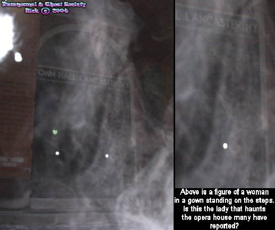 I always feel something on the property here perhaps its because tragedies did occur around the opera house grounds itself. I captured ectoplasm and entities on all sides of the opera house. There were a few areas which seemed to be active here the front stair well, the main sign, the clock tower where a man supposedly hung himself, the back door, and the emergency escape stairs which I walked about half-way up on.