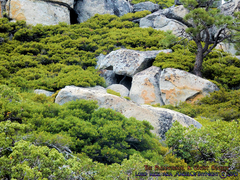 If you decide to go primitive within the Crystal Basin what your going to find out is their are allot of natural shelters, dens and caves. In theory since Bigfoot sightings tend to be extremely high in the Desolation Wilderness and trust me I had a few encounters its safe to assume that these creatures may utilize them. This region is a rock apes haven formed by glaciers you have millions of rocks found through the basins canyons and mountain sides. If you decide you want to leave the trail do some rock scrambling or if you want to bushwhack your going to find such shelters like the ones I took in this photo. There are quite a few on various peaks but extremely hard to get to because the entire basin is extremely overgrown with vegetation. With such caves being so hard to get to its easy for an animal or bigfoot like creature to use them as shelter while at the same time remaining completely elusive.  The habitat found in this basin cannot be more perfect to shelter such creatures. You could spend years exploring and you will never see it all guaranteed. Their are places here that no man has been this is why the region has a good prospect to sustain unknown life forms that are awaiting discovery.