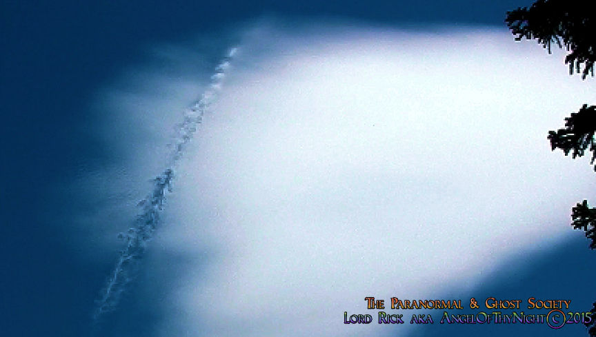 We took a break in this area beyond the meadow at the woodsy tree line where Tammy pointed out this lone cloud with what appeared to be a hole punch through it. Their was a weird contrail that ran from the bottom of the cloud then out the top. When I say weird the contrail looked like a human spinal cord and when it begin to dissipate the entire cloud transformed. It begin to develop ripples which looked like the Sahara desert in the sky. Not sure what kind of meteorological event just took place or if it was one but its the strangest thing I had ever seen in a long time in the sky. Its almost as if some object shot up through the clouds then vanished leaving traces behind of some element which caused the cloud to be effected physical in some manner.