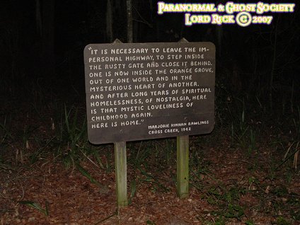 ![]() Cross Creek is an odd bend on a country road out near the Ocala National Forest that cuts right through Orange Lake and Lochloosa Lake. Cross Creek is surrounded by marshes and water further up is a place called the River Styx. The spot is said to create an infinite space between Cross Creek and the horizon. Marjorie Kinnan Rawlings came to Cross Creek in 1928 with her husband in 1928. She came to stay in this small rural Florida Community growing oranges, cooking on a wood burning stove, writing down her impressions of the scenery and enjoying moments with her neighbors who lived in a Cracker House. As soon as she arrived she made a life long commitment to the location making the farmhouse and old grove her home. She use to sit on the veranda at her type writer and writing books that would endear her to the world and capture the forever beauty of Florida and the spirit of its people. May I add times have changed since then lol. Back just a half of century ago Florida was so rural that most of it was unpaved roads and even today half of the state still is unpaved. But Rawlings during this time lived in a world away from a world. The Yearling an American Classic and winner of the Pulitzer Prize was one of her biggest novels. This is why I decided to investigate her farmstead because this investigation is tied into our Click Here: The Yearling Trail investigation which is the site of an old ghost town about 30 miles away from Rawlings residence. So the trail and her farmstead truly are connected so this investigation really completes a chapter with both areas in our adventures. Another story she wrote was called Cross Creek which is a chronicle of her life at the Creek. Then their is a Love Story she called it, where she reveals her favorite haunts, marvels at the passing of the seasons, introduces the reader to her friends and neighbors and shares with the whole world her love of Florida. She is one of the best known names in America literature and most schools read her works today. Personally this investigation meant more to me then most like I said when I hiked out near the Yearling Trail for miles we spent hours being lost in the woods wandering around and so what I seen with my eyes Rawlings did also. But to visit a place where she lived out her years wrote her novels was a real treat for all of us. The farmstead sits under giant orange trees and was a simple but very large one story house. Their were other separate structures such as a bathroom, screened porches, open verandas etc. The house had 8 rooms and was built of cypress and heart pine. It has stood now for over 120 years in the surrounding Florida like Jungle withstanding winds, rain, and hot sun. It is a Cracker style home which was made to withstand the Florida heat and included all open porches, tall ceilings and alot of windows to collect the breeze. It also had four fireplaces and a wood burning stove throughout the home during the winter months when temperatures dropped down. Outside the home was a citrus grove, grapefruit trees, and tangerine trees. She found the grove to be enchanting and said the grove was magical in her own way. She quoted "Enchantment lies in different things for each of us, For me, it is in this: to step out of the bright sunlight into the shade of orange trees; to walk under the arched canopy of their jade like leaves; to see the long aisles of lichened trunks stretch ahead in the geometric rhythm; to feel the mystery of seclusion that yet has shafts of light striking through it. This is the essence of an ancient and secret magic." In her groves Rawlings found peace and inspiration to write. In one of her books called Cross Creek it ends with these words: "It seems to me that the earth may be borrowed but not bought. It may be used but not owned. It gives itself in response to love an tending, offers its seasonal flowering and fruiting. But we are tenants and not possessors, lovers and not masters. Cross Creek belongs to the wind and the train, to the sun and the seasons, to the secrecy of seed, and beyond all, to time," In 1933 Marjorie Rawlings divorced from Charles Rawlings and she stayed on her farm stead by herself through the Great Depression and into more prosperous times. In 1941 she married Norton Baskin and divided her time between their St. Augustine home and her Cross Creek Farmstead where she kept writing novels until her death in 1953 where she died at 57 years of age. Today the farmstead is 50 acres their is a duck coop, chicken coop, barn, out house, shed, farm stead, another cracker house near by perhaps where her neighbors lived, grove, garden with real vegetables growing in it, and jungle trail. When you enter the gate you hike on this fairly short trail and further back surrounded by trees is an open area with the farmstead its gorgeous back here. Its also very eerie and in my opinion Rawlings ghost is here I felt her watching us on the porch and as a psychic she was pretty excited to have our company unfortunately in some ways I felt like we had intruded on her. Very strong psychic connections I had with this place it was a near perfect investigation. But their are other things that happen back in these woods that also remain unknown and so I bring to you The very haunted Rawlings Farm! © By Lord Rick-LordOfThyNight In accordance with Title 17 U.S.C. Section 107, any copyrighted work in this message is being distributed under fair use without profit or payment to those who have expressed a prior interest in receiving the included information for non-profit research and educational or criticism purposes only. Notwithstanding the provisions of sections 106 and 106A, the fair use of a copyrighted work, including such use by reproduction in copies or phone records or by any other means specified by that section, for purposes such as criticism, comment, news reporting, teaching (including multiple copies for classroom use), scholarship, or research, is not an infringement. 