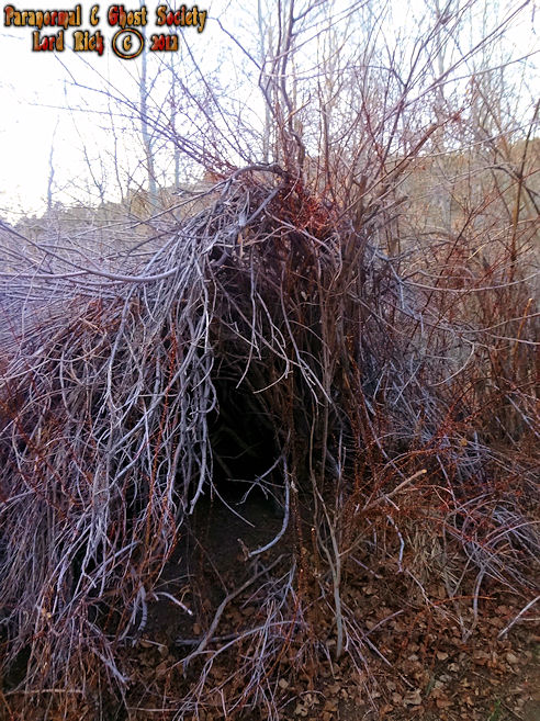 These natural dens created by overgrown foliage although their are some signs that something or someone may have hollowed them out or stacked twigs around it for shelter. Whether these dens are used by mountain lions, bear, bigfoot or man they are rather intimidating because you never know what might be hiding inside.