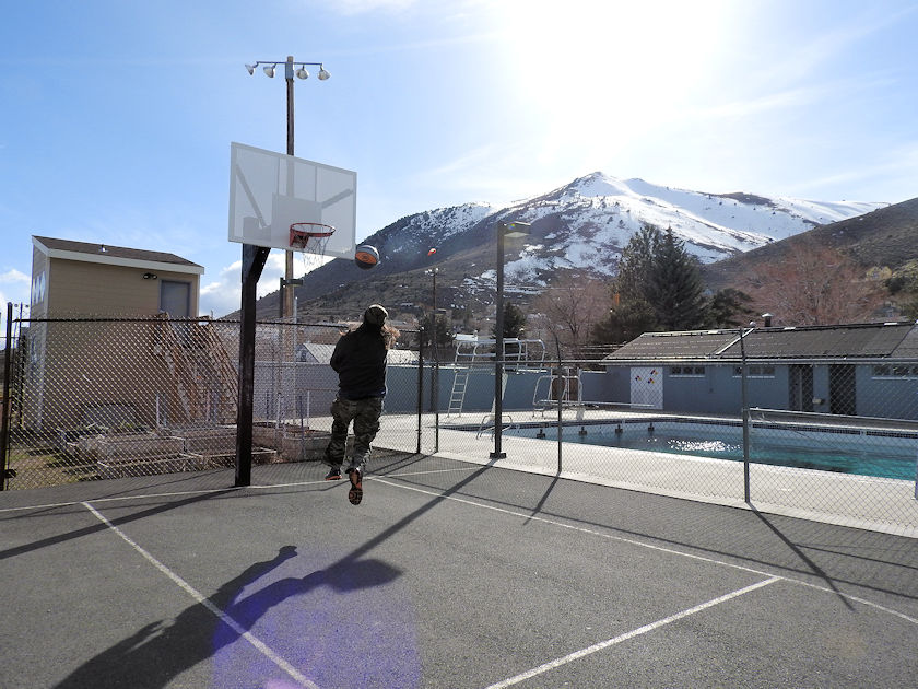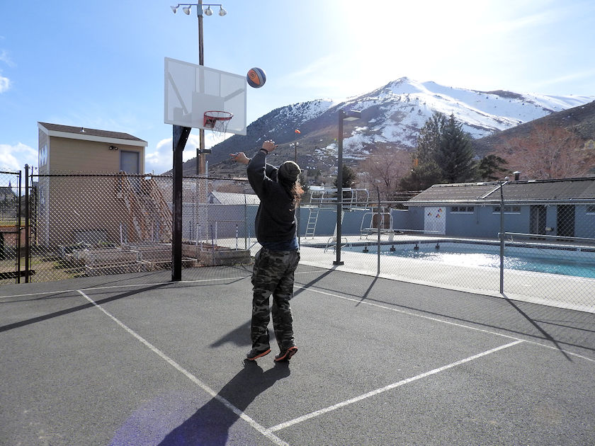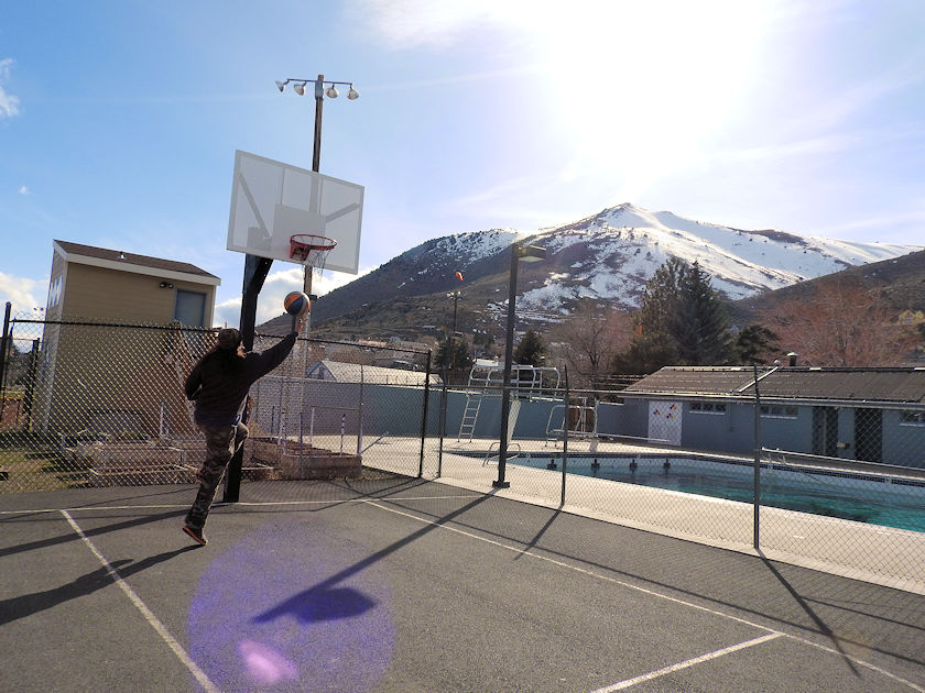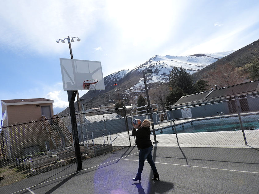 Basketball Practice below Mount Davidson Winter of 2017 nothing like shooting hoops and peering up at the very snowy mountain you once stood on above Virginia City. |