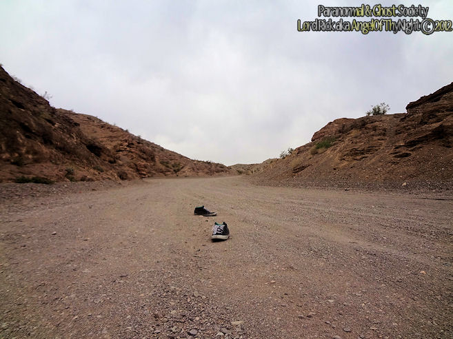 A shoe resides at the base of Nelsons Landing kind of eerie. Back in the day from a private source I recieved information that many of Nevadas missing persons have been buried out here. At times finding shoes and articles of clothing does not mean someone was murdered but it is nonetheless a bit of an odd find.  This is the site where many lost their lives in a flash flood. Hell Hounds no ghosts here are however quite the possibility.