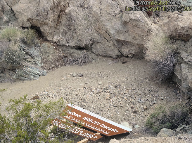 I took a lower mining road to some cave I found or rather a den their was no animals in it but the rock formation I found was really cool. There was a few eerie sites on two occasions on my hike I found peoples shoes. I have heard that over the years people have been killed and buried out in this region the more shoes I seen the more I believe it. As some of you know I have investigated El Dorado Canyon, Huse Springs, San Juan Camp, Nelson, Jubilee and Skull Mine in the region. I also investigated a haunted house out here so I expected no less activity as the night came on and I was in seclusion. Since the production crew decided to spread the investigation out to Searchlight and Las Vegas I will include on my next update some of my other projects I did in this region.