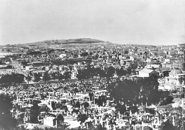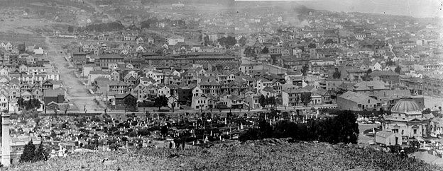 The photos you are seeing below are a reminder to the once great cemetery which surrounded the Columbarium up until about 1929 called The Odd Fellows Cemetery in San Francisco. If you study the photos you will see in a few of them the dome like Columbarium which today is all that remains the rest was all "Lost". Some of the photos show the exhumations and transfer of the bodies in 1929 which then the gravestones and mausoleums were crushed to make a sea wall in the aquatic park district on the San Francisco Bay.