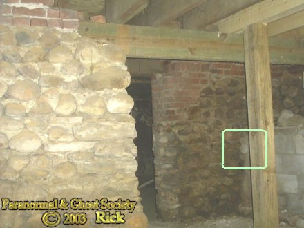 However we pushed on and entered the basement. You really do not get an idea how old this place is till you get inside the basement area. When we walked down the wooden steps into the archway down into the basement I felt something go through me my hair was even blowing and my hairs on my arm stood up then 2 seconds later it rushed past mark and shot up the basement steps. Then at this point I knew something was here in this depot. The basement bothered me alot and it was very strange. There was a door made out of old wood locked from the inside, 3 other rooms all made of rocks and cobble stone with wooden supports running along the edges of the walls.Their was a room particulary at the end of one of the halls I felt watched from. We did not overstay our welcome but we managed to take some photos then head back upstairs. Now that we were back upstairs we started to feel certain cold spots in various areas.