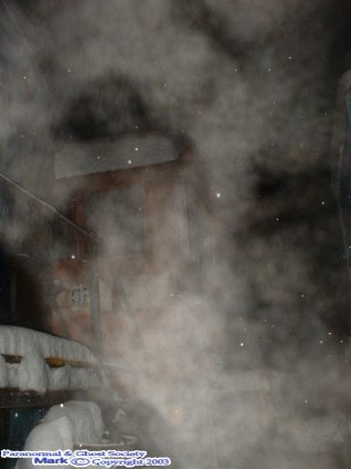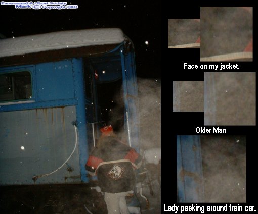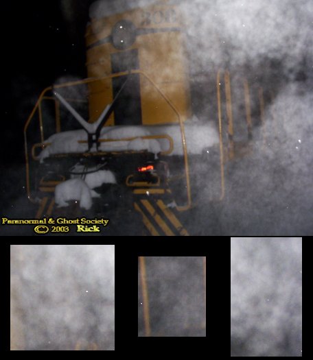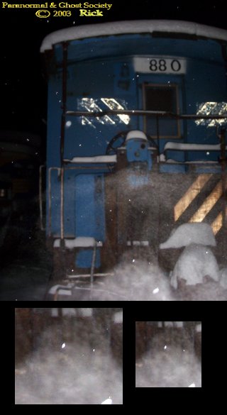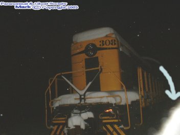 We then came across 2 cabooses. One was a Conrail and the other had no name. These may have been more haunted then the train itself. Mark heard tapping and noises in the one caboose. I felt watched from both of them and you could feel that they were abnormally colder then even outside. We then came across a few engines B&O railroad and some unknown types. I caught some ectoplasm up near the engine itself. Then we decided to head our long walk back down the other side of the tracks to explore some more passenger cars.