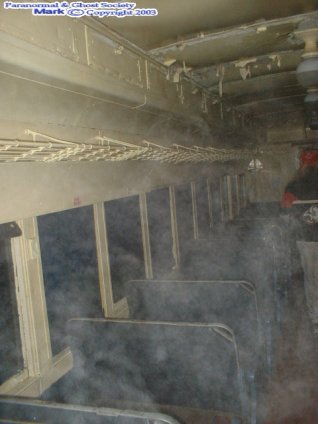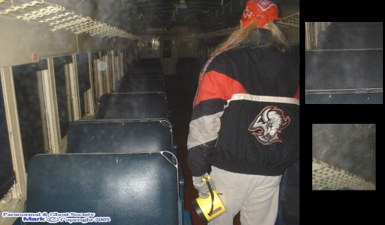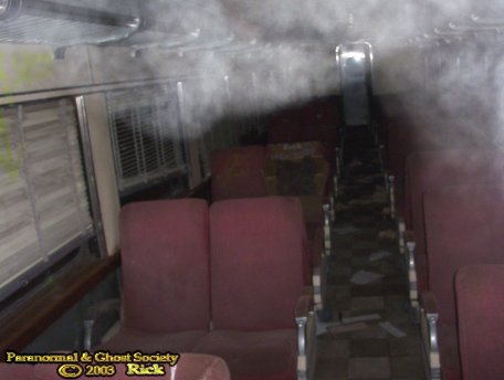 disappear. Although I did not see it I definitely felt a presence watching us from inside the passenger cars and this area. It was very dark between the 2 trains and it was just so uncomfortable for about 3 car lengths till we came upon a passenger car which we entered. This car was very plain looking the seats looked like that of a bus. Mark and I felt something rush past us. The car proved to be active I heard some odd noises inside maybe walking, banging, something moving around inside the car with us no doubt on that. We climbed out and Mark spooked me peeking his head out a the doorway next to me where I jumped down and I said to myself how can I get him back haha and trust me I did but its all good gets the blood pumping.