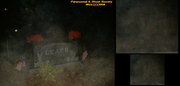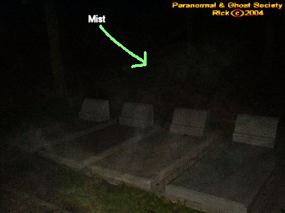 Subj: [ParanormalFlorida] Tonight's Investigation Report... Date: 12/12/2004 2:31:33 AM Eastern Standard Time From: AngelOfThyNight@aol.com To: ParanormalBuffalo@yahoogroups.com, paranormalghostsociety@yahoogroups.com, Paranormalflorida@yahoogroups.com, ParanormalGhostSociety@groups.msn.com Tonight Lee and I set out to do 3 follow up investigations and one new place. It turned out to be one of those weird nights where there was no moon out, not many people and just lots of strange incidents throughout each place. But we had a fun time and we were able to elaborate more in depth at each locations guarantee you that you will not be disappointed with the photos. Although we had to post pone our plantation and trip to a fort tonight's local places sure turned out to be full of surprises around every single turn. The four places we investigated was Oakdale Cemetery, The Plymouth House, DeLand Potters Field and finally The Stone Tracks. We set off fairly late tonight but surprisingly we finished off the night quite early and so our journey begins here. Investigation 2 Oakdale Cemetery Lee and I started walking around the oldest section which is higher up then the rest of the cemetery. Right away you could feel a great coldness the first few minutes of walking down the path. The further we went the darker it became and I could not see a thing almost. We noticed at some points alot of energy in the cemetery. Even though it was peaceful you could tell something watched from very far away. We walked downhill to a giant wall which says Oakdale Cemetery on it. We hen took photos from a lower stone tier near by. I went to take a step ahead and fell off the wall it took me by total surprise as I hit the ground ribs and elbow first. My batteries flew out of my camera and everything luckily I am okay just a few bruises. Where is a nurse when you need one lol? Anybody want to apply? So right away I could tell it was going to be a fun night. After taking a little bit I managed to get up thought I broke a rib at first Lee and I walked further down hill eventually turning back to head towards the older section. So we strayed off the road. We stopped at this one area and Lee turned his back. I looked over and seen a gold ball of light about 20 feet out in front of me. Thought at first it was a reflection till I went up to the area and noticed that this was just a pure stone containing no reflective materials in it. What it looked like to me is a miniature sun it grew in size and brightness then blinked out as soon as I watched it. Lee mentioned he seen something over there to. We moved on further and noticed movement around us. I heard it to could have been wind but this was actually along more of a line of footsteps on the ground. I went to grab my flash light when something ran up to me it was heavy and stopped when I looked up and shined the light. We were in the heart of the older section and of course it takes patience as you spend more time at a place the activity should increase as this is what was happening. Lee mentioned feeling something in one area I snapped a few photos seen mist reflect back off the flash. A few feet away I seen a human like figure jump in front of the camera as I snapped the photo. Lee told me he seen a white human like form as well. So the entity was moving very quickly and after that it was all up hill as something seemed to follow us for quite a ways. Back to the wall again Lee and I took a seat things calmed down I rested up still was a little stunned from my fall so the break help me regain myself. We got up and headed to an area months ago a strange mist moving around was seen at. This area was peaceful no mist or anything out of the ordinary but there was something there with us. We crossed the street and head on over to another part of the cemetery an area where the mausoleum is and other funeral services are usually held. This was extremely cold as Lee said a 20 degree drop at least and I would have to agree I went from warmth to almost shivering. Same type of results the first time I went. Also fairly close to where James last time seen a pirate ghost. This part of the cemetery is always full of energy maybe because they have an area set up for out door funerals and I always see them going on here. We kept cutting through the newer section and eventually came across the grave of a 20 year old young man. Lee had picked up on a strange scent. I do have to admit feeling something near by as this section of the cemetery I never walked through. All in all we finished off the cemetery with ease and a great second investigation then moved on to The Plymouth House.