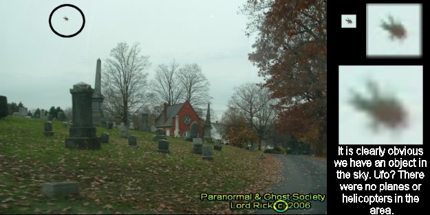 Cemetery to take day shots I captured this UFO its not a helicopter there
