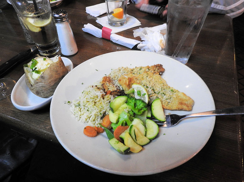 So drinks were a tad bit to steep but the food was great I had a nice Alaskan whitefish dinner with garlic and all the trimmings. We had appetizers while waiting for Ann to show up a friend of Leona's then we had dinner. I cant complain I ate and I drank hearty it was nice especially after a hard days work exploring cemeteries in Oakland. I am always up for having a good time and partying my friends know that.