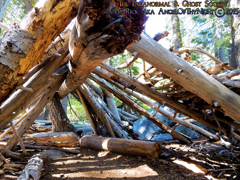 Jarrod and I found this fallen tree with a bunch of tree limbs stacked around it. Someone may have used it as a makeshift shelter for camping then again Bigfoot also creates similar shelters so you never know. During the winter months this area is fairly inaccessible as a matter in fact hikers are very rare therefore bigfoot sightings or what some say an abominable snowman lurks back here. I have spent hours researching peoples bigfoot accounts, evidence and videos in Squaw Valley. Despite its popularity this has been a Sasquatch hotspot for decades and their are to many reports to just dismiss it entirely.