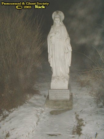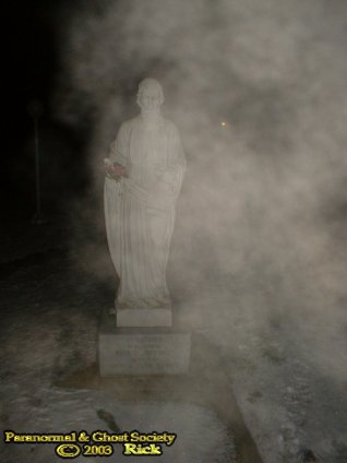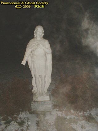 This place certainly looks a lot different at night that I will tell you. As we approached it the statues looked like they watched me of course they are life like so my thoughts were it may be hard to tell apart the ghost from the statues. So keeping an eye on movement here was essential. It did not taken long for the ghost here to be active first 2 photos revealed ghostly images. Although I decided not to get greedy it seemed like the