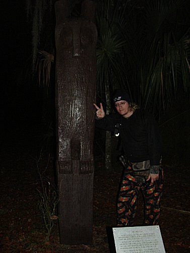 ![]() Owl Island has been inhabited around 1 A.D. if not even earlier then this by the Timucuan Indians which were very abundant in the state of Florida. Of course Owl Island is its old name the new name I will not disclose cause I do not want to see it become a disrespected location. The owl is a symbol of death but archaeologist think that rather it was used to scare away people daring to trespass on the island which was not only the site of a large shell midden but an ancient native American village. Nonetheless its a powerful symbol and anyone who almost came near the island was scared off by the owl totems surrounding this place at one time. This mound is about 30 feet high and 200 feet in length it is one of the larger ones in Florida. The island is about 3 miles in length and over 1600 acres its very large nestled along The St. Johns River and Snake Creek which winds back and forth like a serpent. Their was a mound village near the largest shell midden however the island has many more present or hidden along its shores. The island was inhabited all the way till the late 1700s by the native American people. I can see why they chose to reside on the island it had 28 species of plants, 48 species of animals, and was protected from the elements. The island has a varied elevation parts of it actually sit below the water table therefore their are bogs and marshes its pretty eerie you cannot just dock anywhere you want on the island. Their are pine flat woods, palm hammocks, oak hammocks, cypress swamps and a high abundance of snails on the island. When the native Americans lived here their main food source was the snails. Two clans resided on the island the Owl Clan and the Otter Clan of course the Owl Tribe was more powerful according to history. Many artifacts had been uncovered on the island one of them was an Owl Totem discovered in 1955 while digging out a canal was done. In 1978 a pelican and otter totem was discovered while an underwater utility cable was being repaired. These totems are the only North American totems found outside the Pacific Northwest. The river mud protected them from the rot and today one of them is at the Fort Caroline Museum. The replicas to the totem poles are on Owl Island they are not real so if you seen us having fun with them on our Paracomedy Page it is because we already did our research and new this:) The Owl Totem was carved out of a log then two smaller pieces of wood attached together. The Otter Totem Pole has the otter holding a fish with the pelican. Also found has been a broken dugout canoe paddle, bone pins, awls, and the Organic Pear. We wanted to sort of follow a native American tradition so we canoed a large portion around the island to understand what the native American people had to endure while living on this island. I guess that is what makes our organization different is we work with more ancient native American sites then any other group and if you do not know what your doing its dangerous. The island is a death trap surrounded by large alligators sometimes dozens of them in one area alone if a small canoe were to be tipped the swim back would be hundreds of feet through the gator infested murky waters thus leading to a very painful death. So I would not recommend anybody every trying to pull this off like we did some investigations are strictly about survival or rather should we say life or death! This island is a place of power its alive believe me when I say this. Sure many visit it, camp out, walk its few miles of trails but very few have a grasp on its rich history. Speaking of rich history the island was the site of a pioneer homestead, a boat yard, a center for commercial fishing and even a cattle ranch. When Williams Beresford the Earl Of Tyrone was awarded 20,000 acres part of this island became part of it during the British Years. Eventually Moss purchased 1200 acres of the property which bordered the island. If you remember we investigated the Beresford Plantation & Trail its a very historical set of forest. Further below you will read a journal entry which talk about this island a little bit when Bartram first discovered it. Nobody for sure knows his exact camp site but his schooner was destroyed by a storm near the island and he sought shelter here. Journal