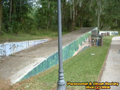 Deland's mural committee back in 1998 worked on bring images of Deland's past to the people who visit Painters Pond Park. The park is surrounded by a figure 8 walking path and 2 very large ponds. Also a series of Murals that run along a wall depicting Henry A. DeLand's dream everything from an pioneers, to people arriving on a steamboat to even the events that took place shaping Deland's history. The murals are painted with a clear coat every 2 years this protects them against the ultra violet rays and preserves them for many years to come. Before 1998 the area remained fenced off and neglected. Taken from plaque in the park it reads like this which tells you a little more about the history: Painter's Park named for Deland Businessman Edward Okle Painter, was the site of Deland's first industrial complex and supported an early African-American neighborhood. Bounded on the north by railroad tracks the area was opened for development in 1887 by W.W. Parce, an early settlers. In 1889 Parce built a fertilizer factory northeast of this monument and later sold the business to Painter. In 1895 Painter constructed a print shop west of the monument. Residents fondly referred to the area as "Printery Park" Painter relied on the Sydney Weller Johnston to manage the printing company. By 1907 Johnston had acquired Painters share of the business. In the early 1900s, Printery Park and adjacent areas contained African American neighborhoods named "Africa" and "Red City". Clusters of dwellings amid churches, general stories, and a meeting hall contributed to vibrant African-American communities. Wisconsin Avenue, initially named Park Avenue was divided by a small green space known as "Valley Park." Realigning the road to its present configuration eliminated the small park and the original winding course of the avenue. The relatively low elevation of Printer Park encouraged the City Of Deland to install a storm retention pond on the south side of Wisconsin Avenue in the 1920s. The pond led to the renaming of the area as Painter's pond. The city acquired the Company property in 1970 to expand its storm water facilities. In 1998 the site was redeveloped to include a public green space. The bricks used to build this monument came from the original printing company building and were donated by the Johnston family, who continues to operate the E.O. Painter Printing Company in Deleon Springs Florida. Other then that I do not have any further information although this is a really interestingly haunted park. It always has a gloomy feeling when I go for walks at night some of the murals look so real as if they are watching every move. There are ghost here they do follow you around perhaps that is why I enjoyed this investigation so much. It makes it alot easier for the ghost to follow you then for you to follow them. But this is not just a park full of ghost from Deland's past but its the type of place you bring your sweetheart sit down and relax. I became more or less interested in it the first day I arrived in Florida. Passing it a few times made me curious as to what all the murals were about its not often you see that in a park. Although I was teasing my kids telling them that there were alligators in those ponds which exist on each side of Wisconsin Avenue where the park is divided. But with all the history such as tracks at one time running threw near by, stores, a factory, and little communities that surrounded the park it is no wonder why this place turned out to have so many different ghost. This place is a jewel and I am glad that I was able to bring others a story about it. But why is this park so haunted maybe the art has captured the essence of many souls? Or perhaps something occurred at one time here 200 years ago. I mean no buildings have stood here in years however with it so close to the haunted Stetson, the fire that occurred here that broke out downtown Deland it would be no surprise that the park has some kind of supernatural activity. By AngelOfThyNight-Rick |
