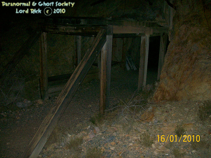 We never did find the entire town which boast some walls and foundations of the saloons and stores. I did however find a windmill, foundation, scattered debris, shaft, Bonanza King Mine, water tanks, Bonanza well and few other minor remants of the town. Beneath the windmill is a boarded up shaft even looking through the holes I found the shaft to be extremely deep. Perhaps this was the well and not a shaft at all. But with other mines like Kerr, Rattler, The Mozart etc it was obvious that below the town was a series of tunnels which kept the town thriving for many years. Today the locals still use the town site as a rest stop for horsebackers to give water to their horses. I found many horse shoe prints and manure. The area sits up along the Providence Mountains one of the more prestige mountain ranges in the Mojave. Trust me I know I sat on one of the peaks looking out into the vastness like an eternal darkness. It is very secluded from any local town and thus we found out how hard this place is to access at night. Let me put it into a broader perspective to understand how much work goes into such an exploration at night in the Mojave. Imagine you go down this rocky road for miles....getting out of your car you follow a trail to rough to take the vehicle on. No moon or stars grace the sky its pitch black. You hike for almost an hour not coming up to any foundations or signs of a ghost town. Miles away you behind yourself you visualize a porch light which is a secluded range not being able to tell if its moving slightly or even towards you. The trail begins to get hard to follow as many washes weave in and out of it crossing every so often then all of sudden you reach the well site for horsebackers. Their is a pit which looks eternal covered in boards.....you get ill just looking at it feeling something inside hiding in the darkness. You follow the trail after spending time at the Bonanza Well still unable to find the town site due to hills all around you. The trail begins to to go up a large hill then back down leading you right into a mine at the base of the Providence Mountains. You check out the mine think you hear voices inside...then all of sudden the lights start to dim and run out almost....you still have not found the mill or other parts of the ghost town. Your pressed for time soon to be lost in the darkness. That is why this is such an amazing place so much remains to be seen just with any ghost town remants can be scattered across giant valleys. Providence was a booming town what could be better then to be dead center of the Mojave Desert in search of the ghost of its past! Below is a very good history read on Providence and the mine. This ghost town gets plenty of attention across the web sadly its condition appears to be deteriorating perhaps due to the desert elements or local vandals. My opinion is this is a spooky place at night miles from the car.....trails that go off to nowhere....very rocky terrain.....blind spots from dunes and hills. My only advice for ghost town enthusiast is places like these are way better visited during the day so that you can see the various sites. As ghostbusters or rather paranormal investigators most of the locations we visit are at night which adds perhaps to the mystery or maybe it adds to the challenge of exploring. © By Lord Rick . . .