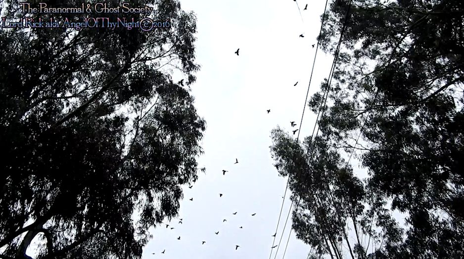This is like something out of Hitchcock's movie the birds while we were doing research around the ghost town thousands of birds were flying over us. I am not sure I seen anything like this although its not paranormal it definitely was a bit out of the ordinary. Here are some of the clips from the massive bird flocks that were flying above us and this does not even touch the tip of the iceberg because their were times we seen thousands flying over us till I could ignore it no more and snapped a few photos. The birds may be migrating up the coast and stop here because the land is not only lush but their is a seasonal lake back here I call Hobbels Pond. It seemed as if the birds were very sensitive to our presence because the moment we walked down the road or through the woods you would see thousands of birds just swam above our heads.