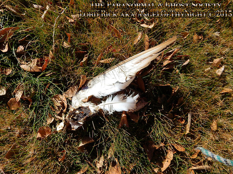 Besides a few mediocre readings on the EMF detector and one solid EVP we also found this mutilated bird. It is not paranormal but it is a strange find within a cemetery so more then likely a kitty in the neighborhood was the culprit behind this birds demise.