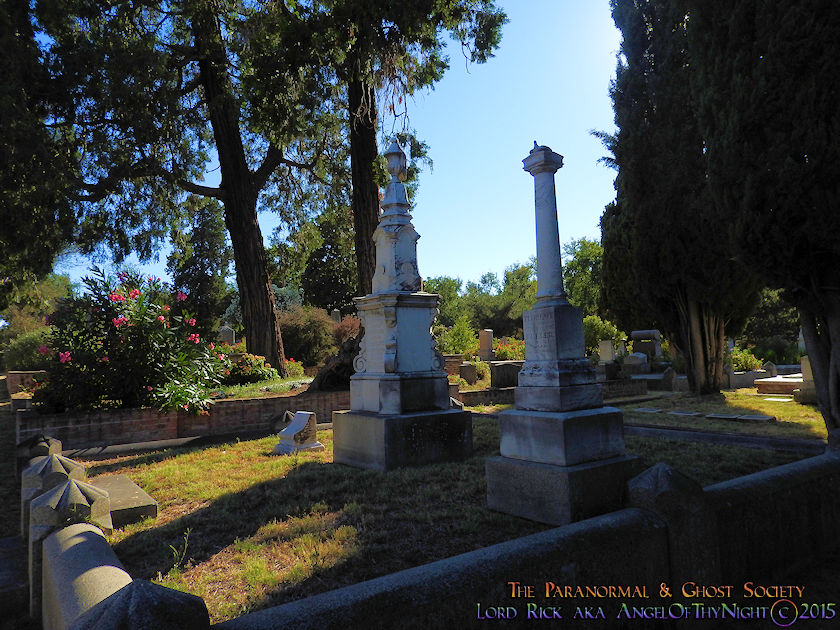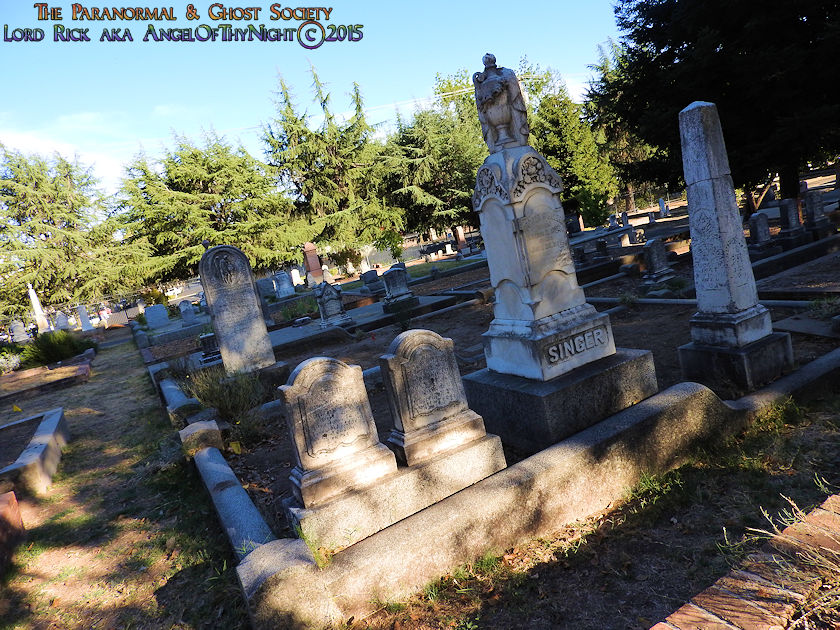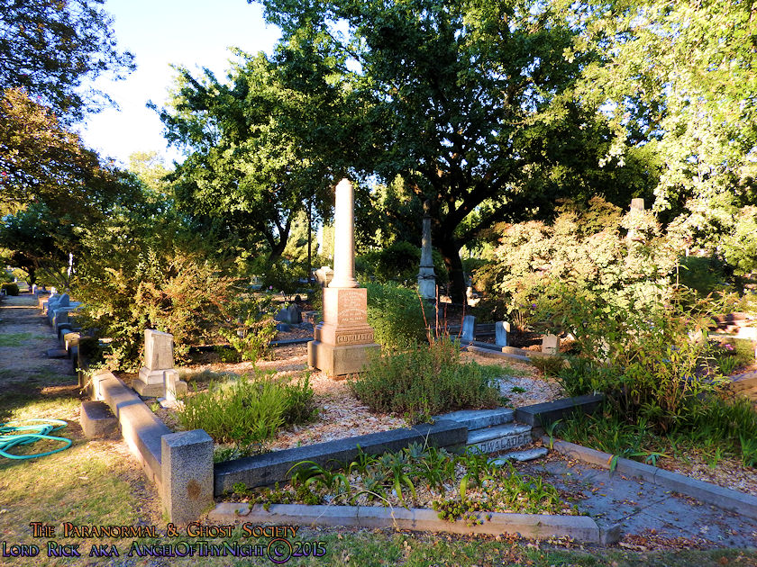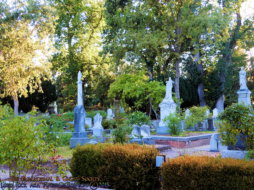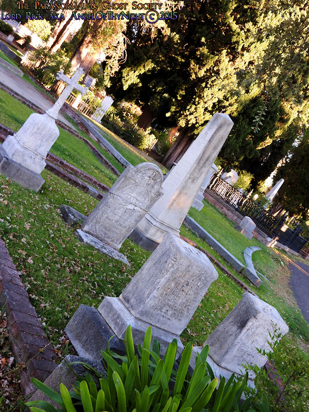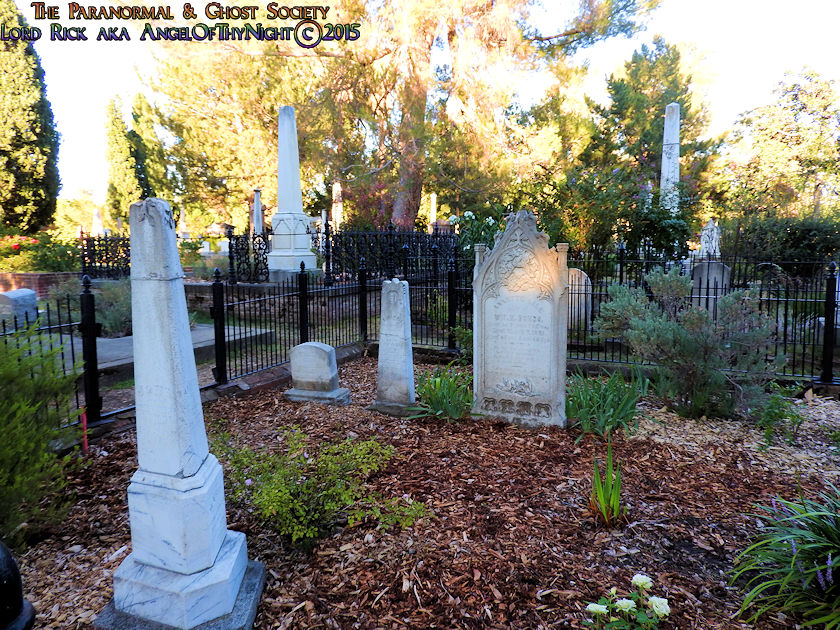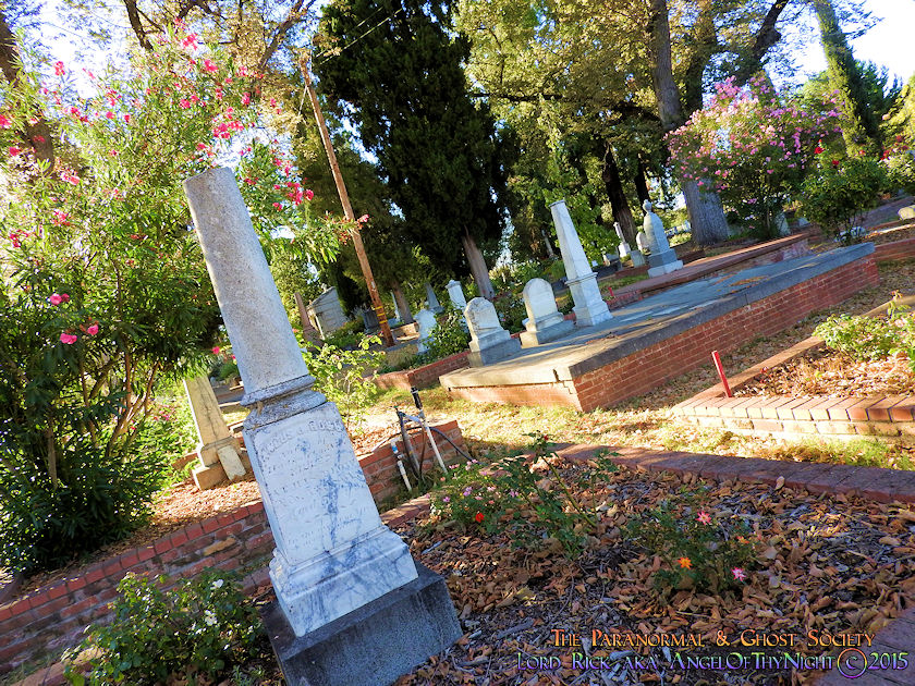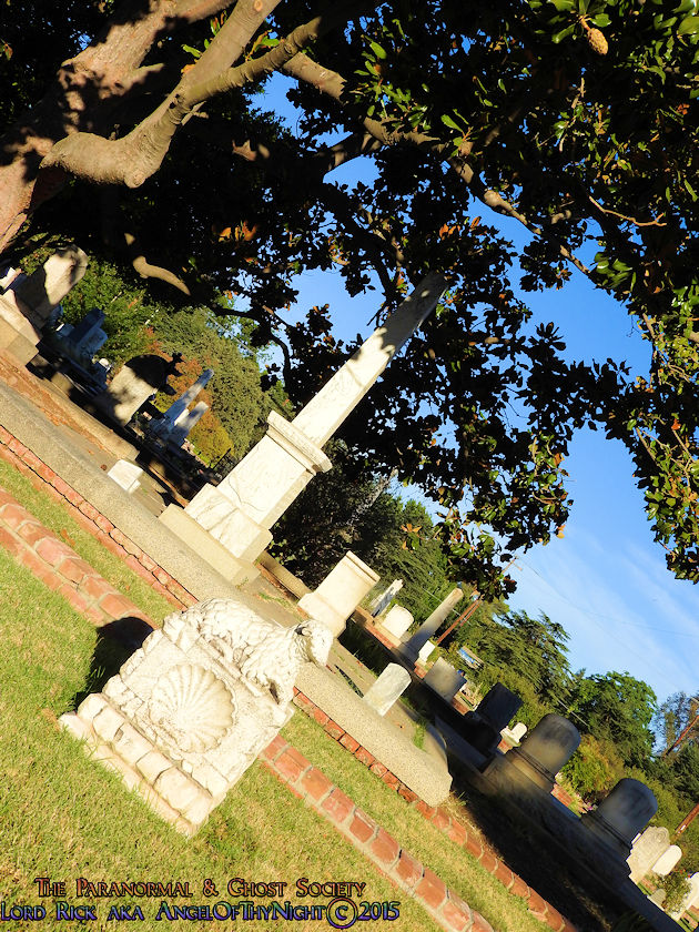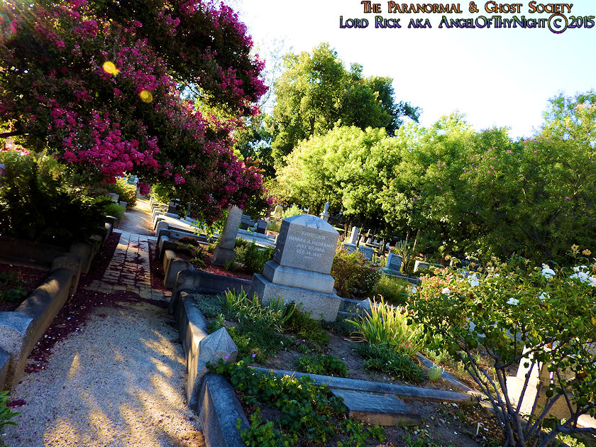 Below I have posted a map to various points of interest found within the cemetery and notable burials just in case our viewers decide they want to visit this beautiful Victorian Graveyard. Our website is not just about educating others about the history and the paranormal but it also serves to motivate others to visit these locations enjoying them like we did. This is one of my favorite cemeteries in California and we will be working with it one to two more times. Their are over 25,000 interments found here with thousands of graves with beautifully written epitaphs. You could go here numerous times and always see something new. I also found allot of rare flowers growing here sometimes you might get a solo flower that is not found anywhere else near a gravestone or monument. Other times the walkways are lined with pink, purple or red flower petals by blooming trees that provide shade over many of the gravesites as you can tell from our photos. I adore this place I am so not a city guy but if I were to chill in the big city id think of Old City Cemetery as my stomping grounds. What is their not to love on one end of the spectrum you have allot of wild western historic figures buried here each one with a story to tell and on the other end the ghosts of the past whom haunt this Victorian Cemetery!