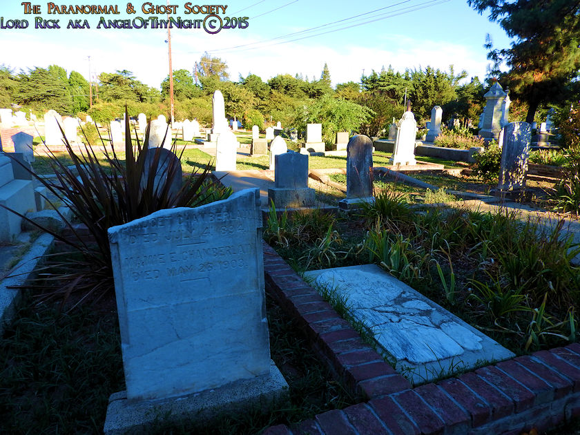 Now I would like to talk a bit about some of the ghost stories associated with this cemetery. As a matter in fact Old City Cemetery is said to be the most haunted site in all of Sacramento. The most famous story is about the ghost of May Woolsey who was a 12 year old girl who died in 1879 from Encephalitis. May's mother tried to contact various mediums and when she claimed that her daughter May contacted her from the other side to let them know she was not dead but in spirit waiting for her parents in the spirit world. May's parents kept all her toys including her diary in a trunk sealing it in a wall.  When the home was purchased the new owners were doing renovations when they discovered the trunk and now all her things can be found in the Sacramento Museum. People often see the ghost of May playing around her grave site or within the cemetery and sometimes even at her former home. People say her ghosts emanates with positive energy. If you check the notable interments section on our site you can see May Woolsey's Gravesite along with some more in depth history and various toys that been placed around her tombstone.