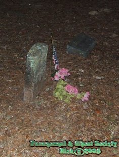 Many of the stones are spread out and when I say spread out I mean you may have a stone alone then not see one for fifty feet. I believe now I could be wrong that the cemetery may have some Seminole origins but if it does not it probably got its name from the fact its in the Seminole Forest which has at least three springs which you will read about in our Seminole State Forest investigation. Their is at least a hundred wood post that stick through the ground within the cemetery each one with a different number. I thought it was kind of odd it actually ruins the whole natural feeling to the area as you seen all these post with metal signs at the top of them. I do not think so much its the history that matters to this private cemetery as much as the fact that it sits in a very desolate area, in the middle of the woods, and on native American ground. That in itself should say enough. One of the gravestones here is missing the other part to it as only a square base sits in the ground. Another thing that really stands out here is the fact that its very pitch black if you had no light you probably would not even be able to see where your going. Their is woods on both sides and it goes back for a few hundred feet to a point where you cannot even see your vehicle. Other then that I have no further information on this place just that it is one of the creepiest cemeteries I been to in the many I have visited in central Florida. The ghost here seem curious but rather keep their distance. Their is perhaps feelings of what are you doing here since its a private cemetery. So the ghost probably were a little surprised to see a group of guys get out and start taking photos. But it is what it is a cemetery with perhaps a ghost story or two of its own to tell. © By Rick-AngelOfThyNight